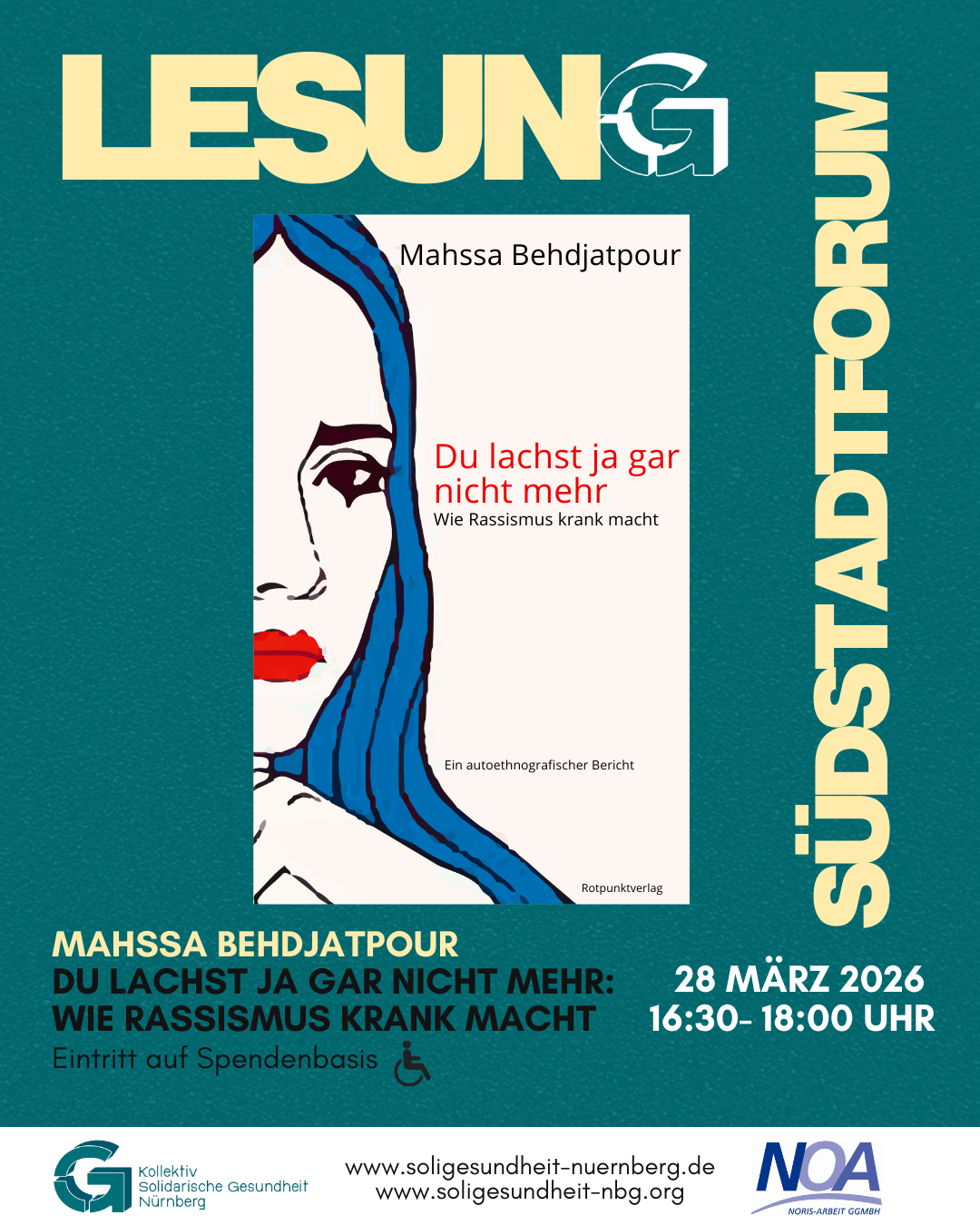 Mahssa Behdjatpour greift das Thema mit ihrem Buch „Du lachst ja gar nicht mehr: Wie Rassismus krank macht“ aus einer oft übersehenen Perspektive auf: den Auswirkungen von Rassismus auf die Gesundheit. Sie zeigt, wie Diskriminierung nicht nur gesellschaftliche, sondern auch körperliche und psychische Folgen haben kann. Dabei verbindet sie persönliche Erfahrungen mit wissenschaftlichen Erkenntnissen und eröffnet zugleich Perspektiven für Empowerment und Heilung.