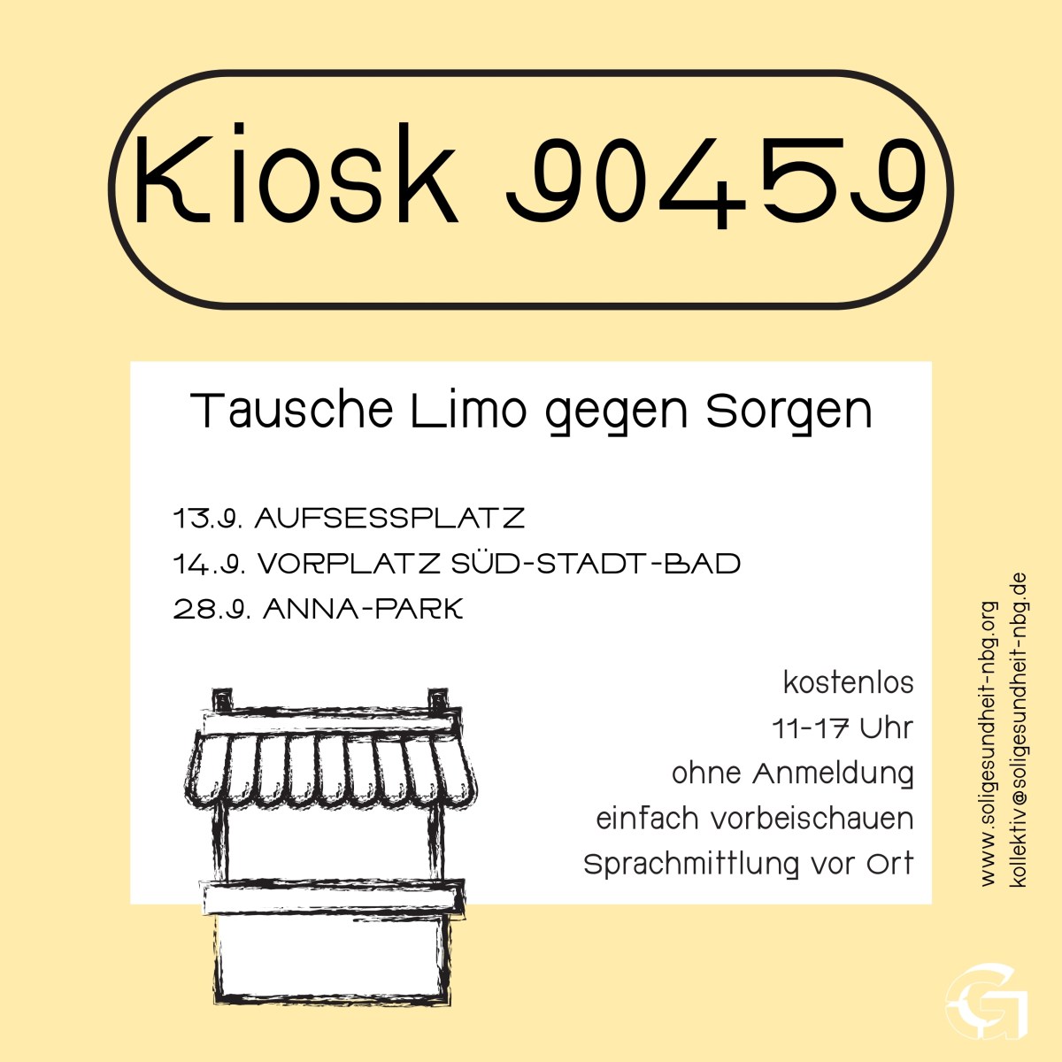 Wir sind mit einem mobilen Getränkestand unterwegs und tauschen Sorgen gegen Limonade. Kommt vorbei und mit uns ins Gespräch! Was brauchen wir hier um gesund zu leben? Was hält uns gesund? Was macht uns krank?